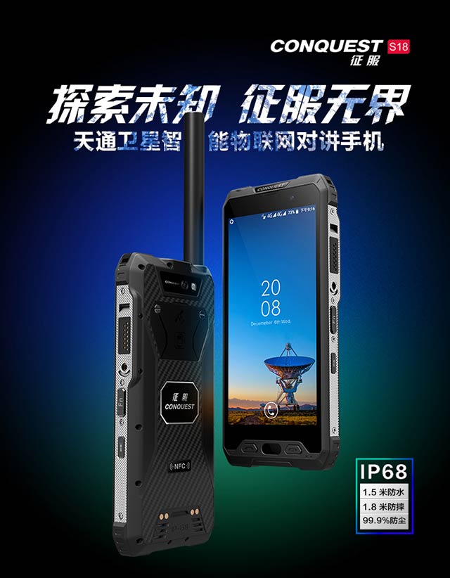 康凱思特新推出CONQUEST S18天通衛(wèi)星手機(jī)+4G雙模智能三防手機(jī)