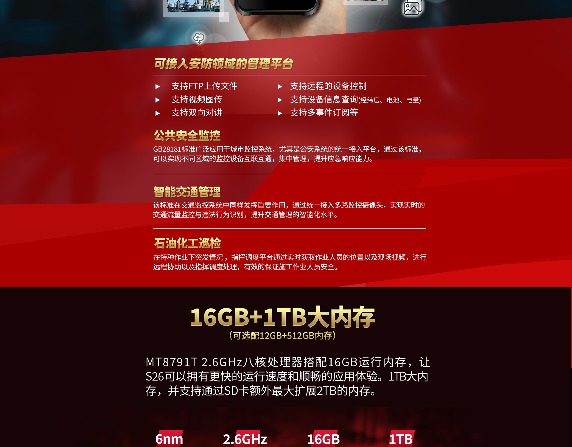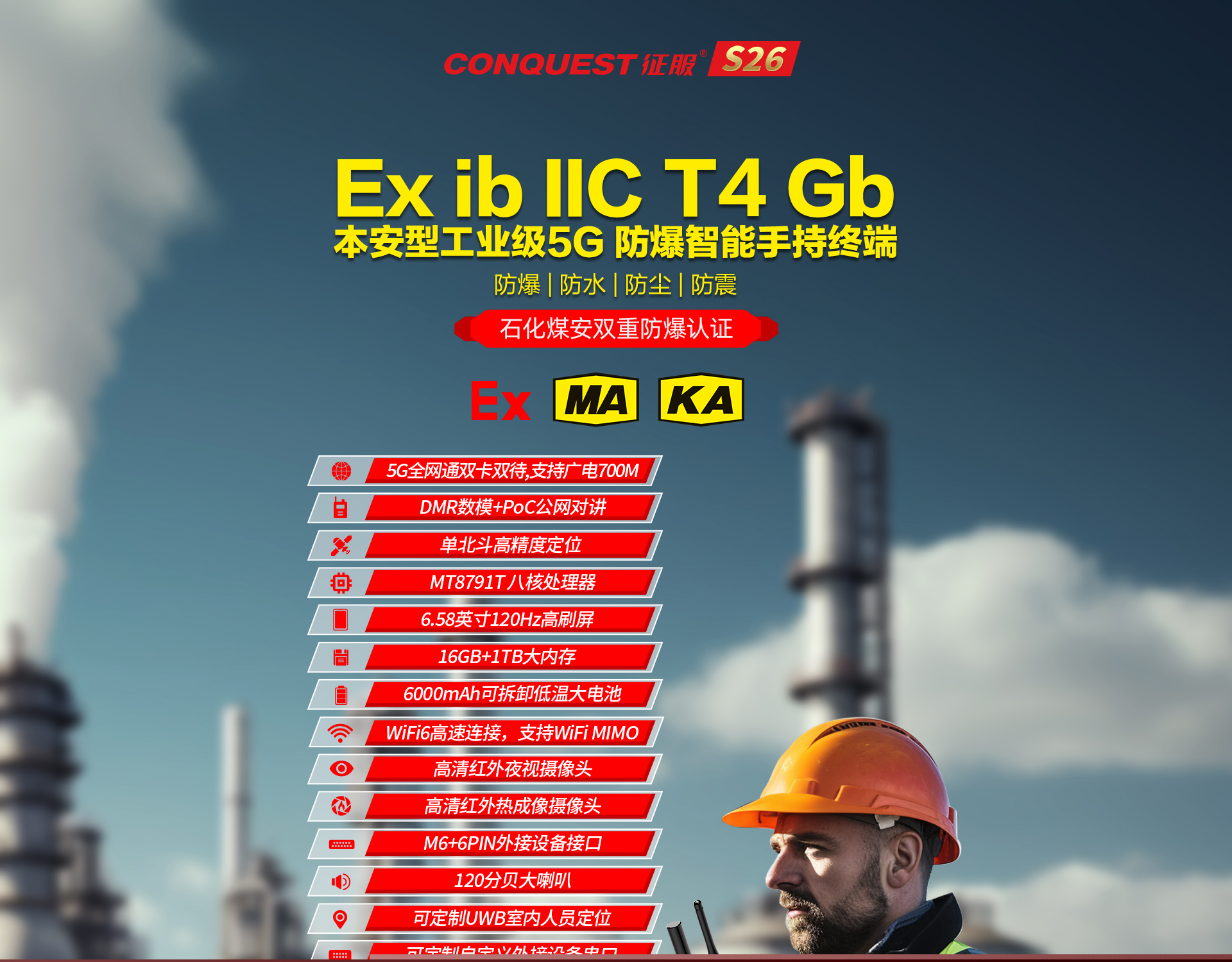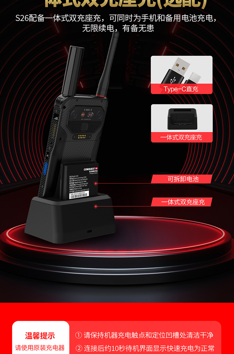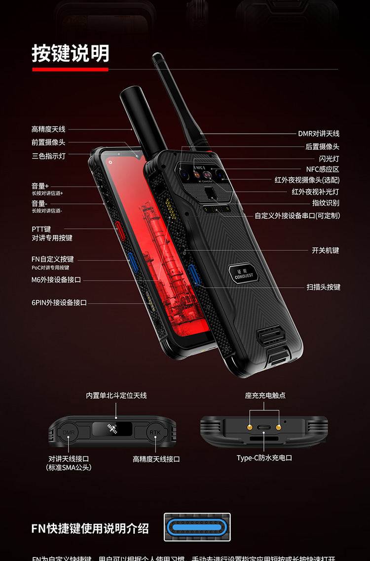 CONQUEST征服S26Plus16GB+1TB超大內(nèi)存單北斗高精度防爆智能對講終端