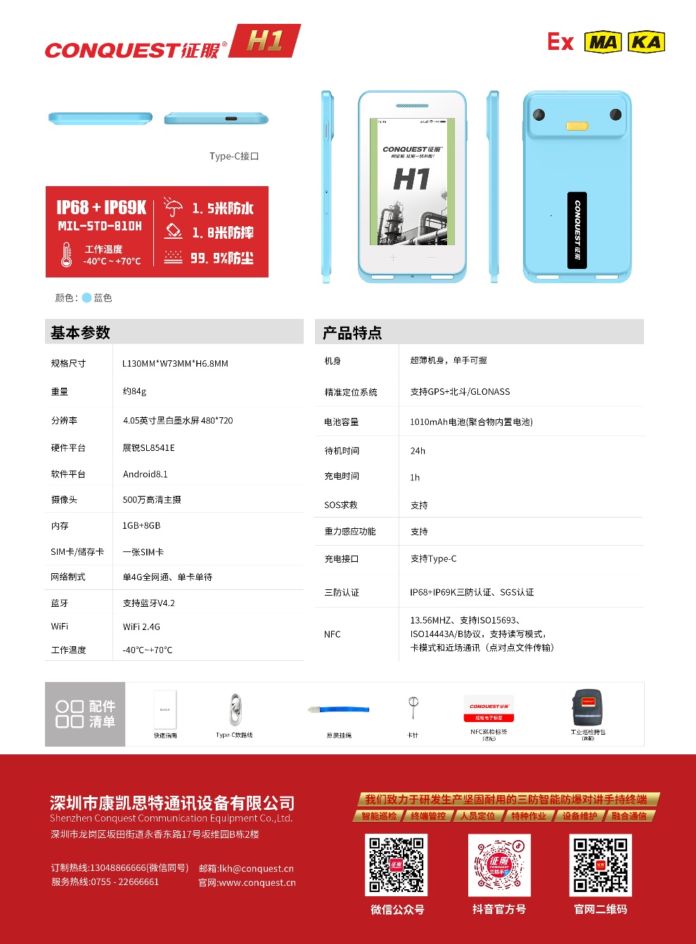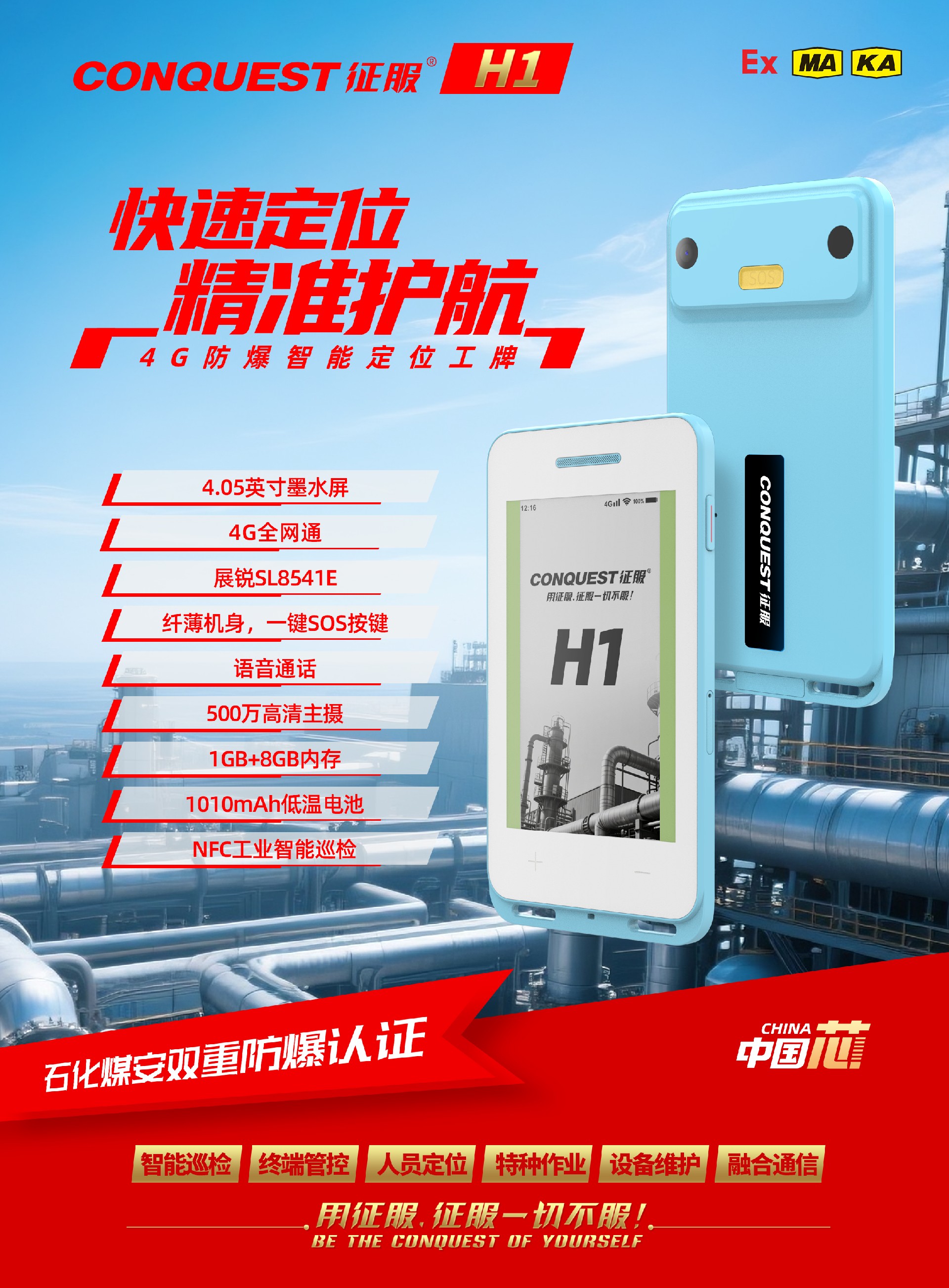 智能定位工牌,CONQUEST征服H1北斗人員定位工卡。