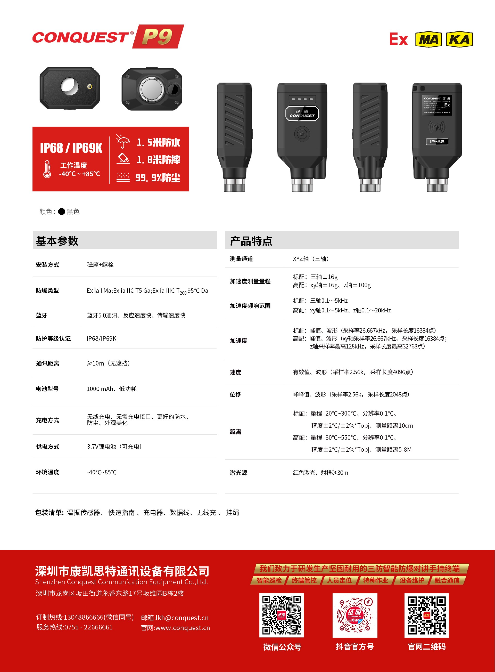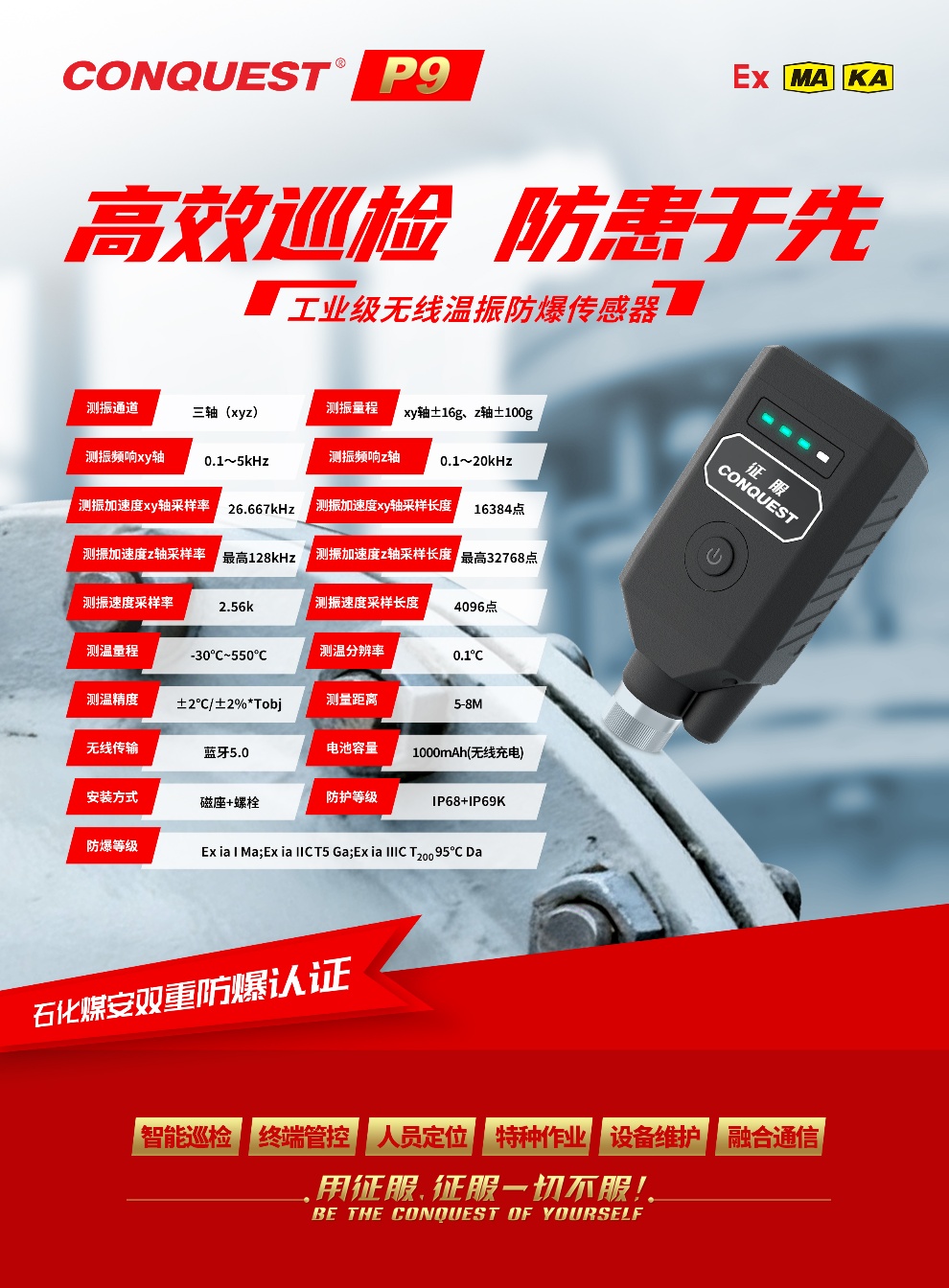 CONQUEST征服P9工業(yè)級(jí)無線溫振防爆傳感器。數(shù)據(jù)采集,高效巡檢。