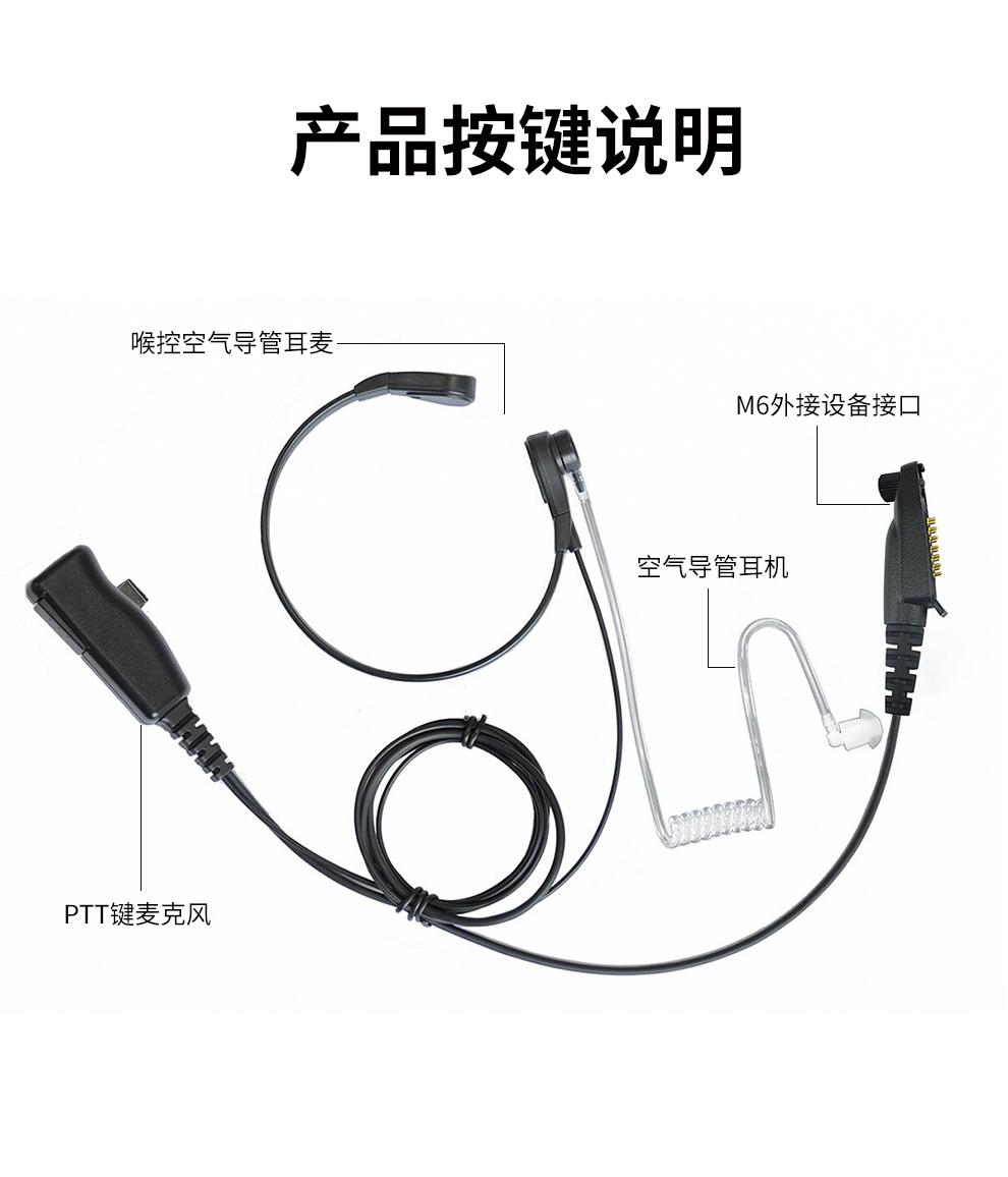CONQUEST征服 對講機喉震喉麥耳機喉控空氣導(dǎo)管耳麥M6接口防輻射喉麥彈簧耳機 吼振耳機