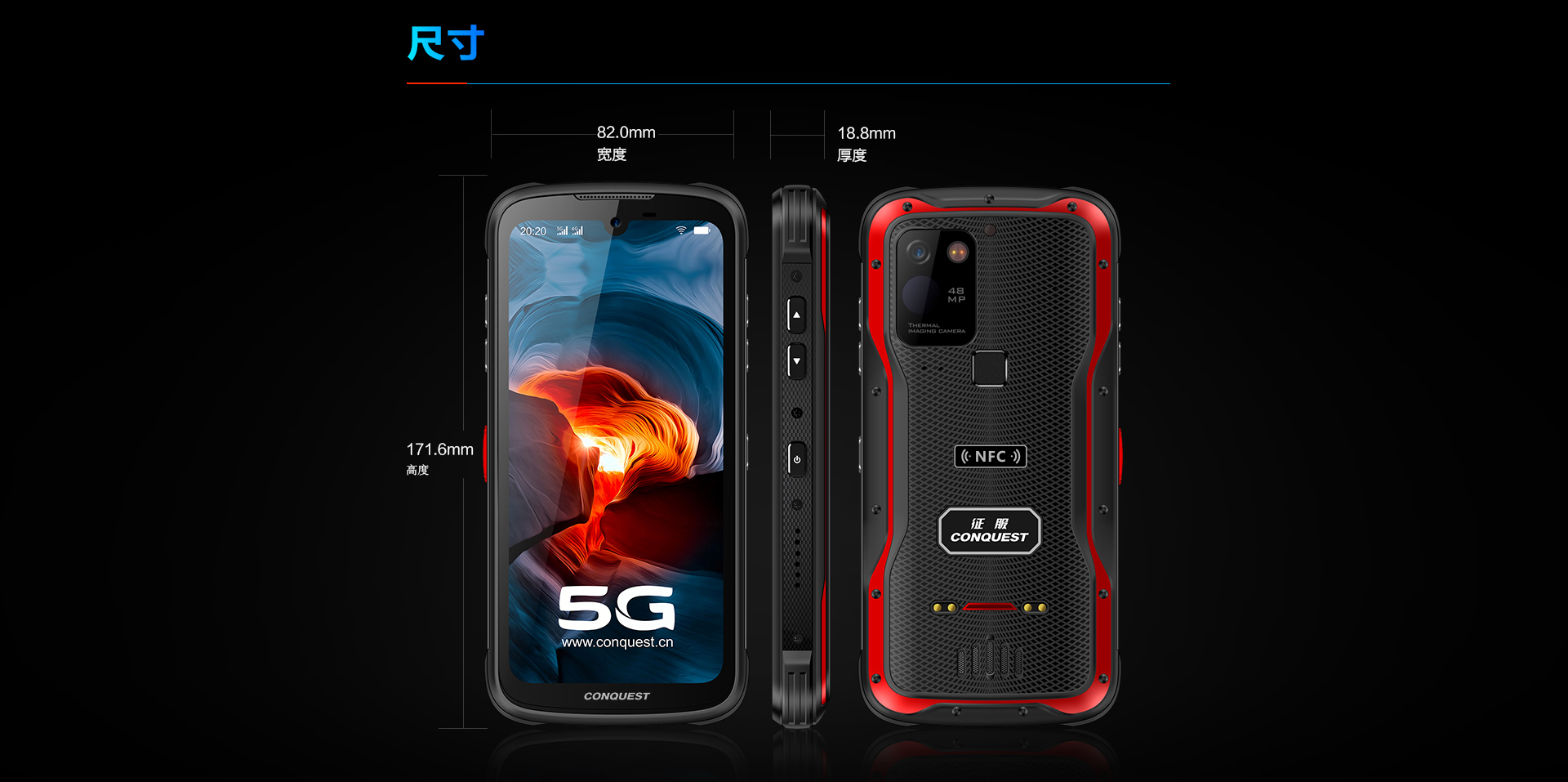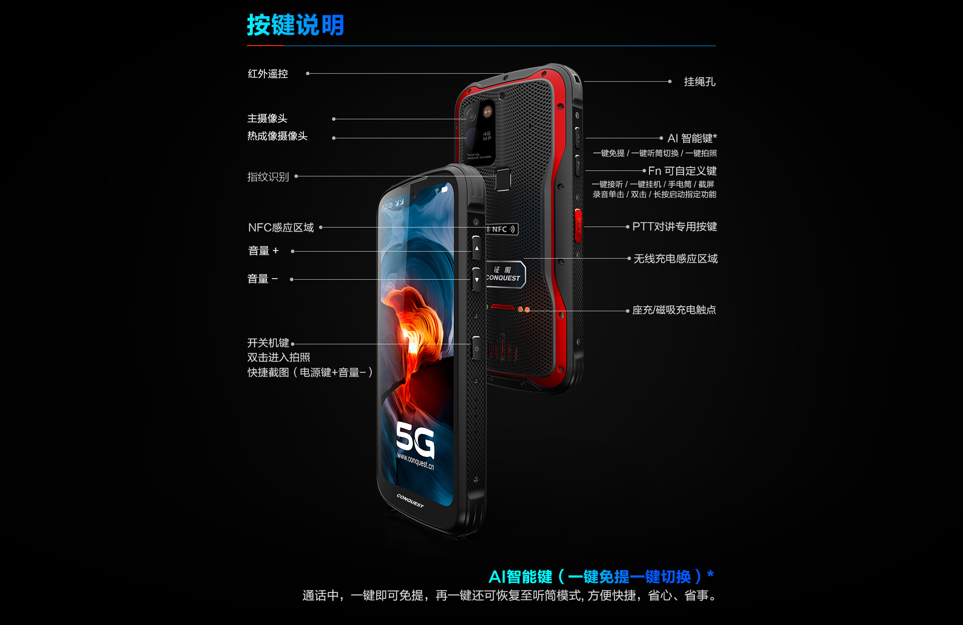 CONQUEST征服S20 5G全網(wǎng)通紅外夜視三防智能戶外防水手機(jī)4800萬(wàn)四攝超長(zhǎng)待機(jī)手持終端 電力巡檢終端