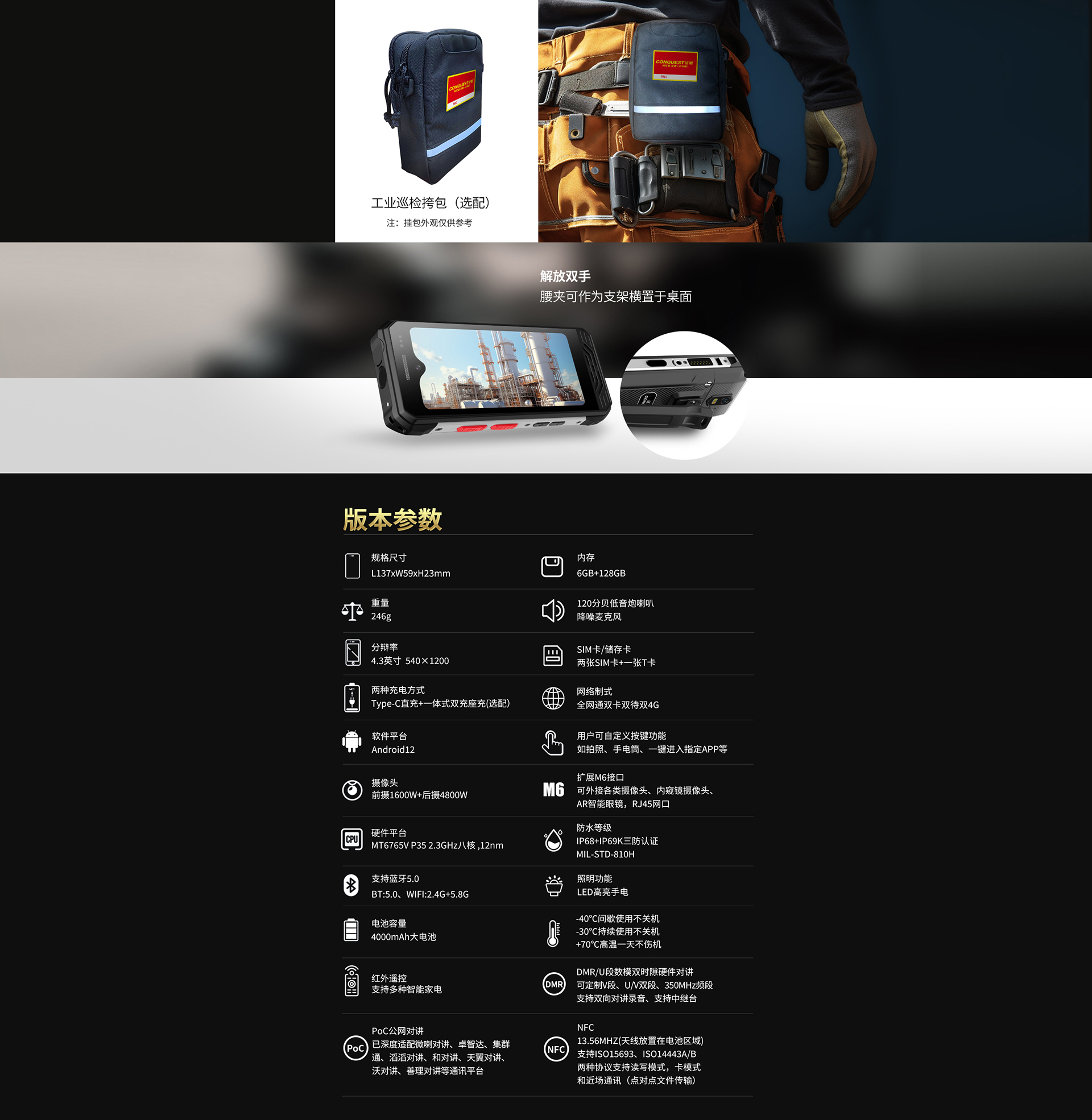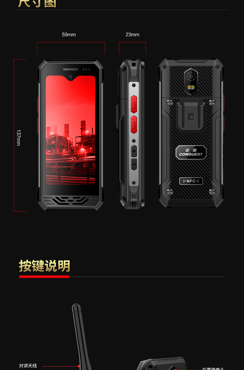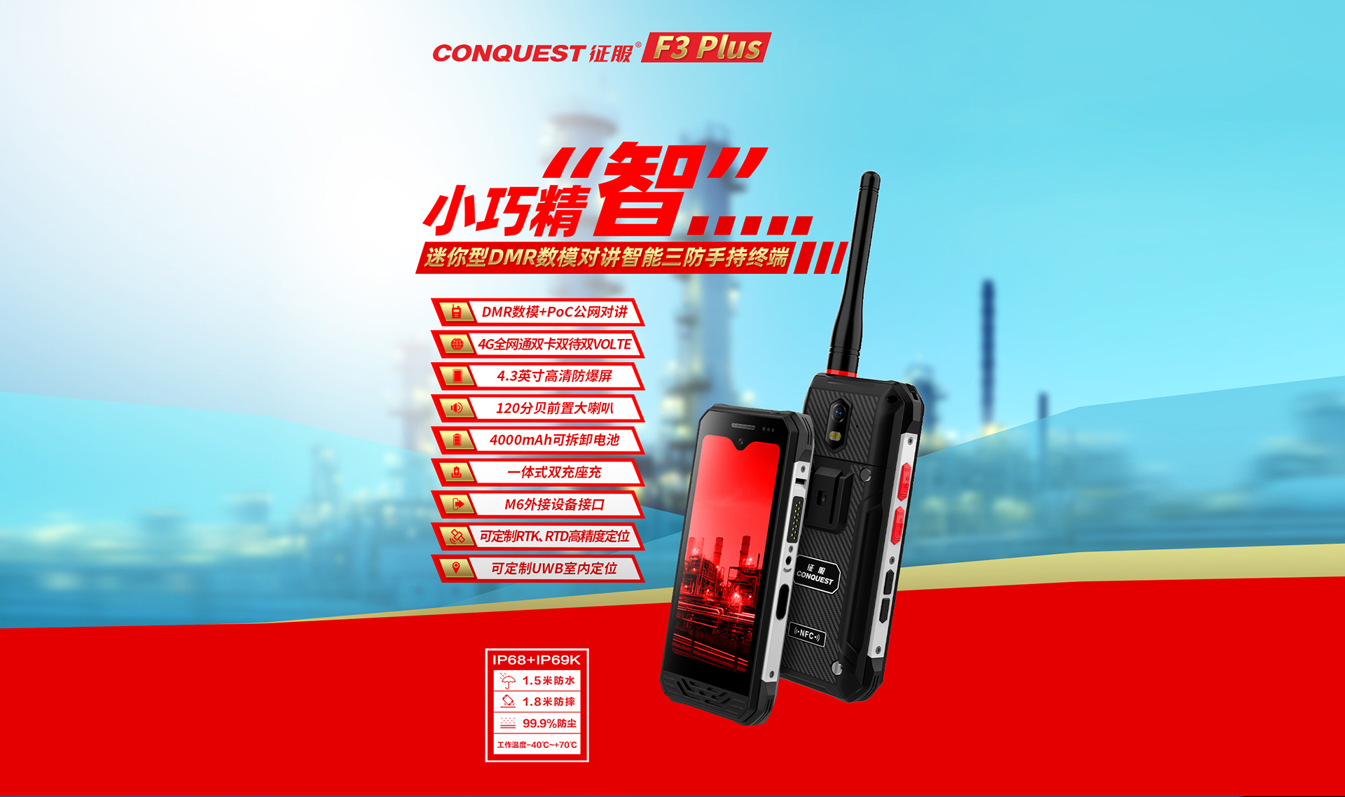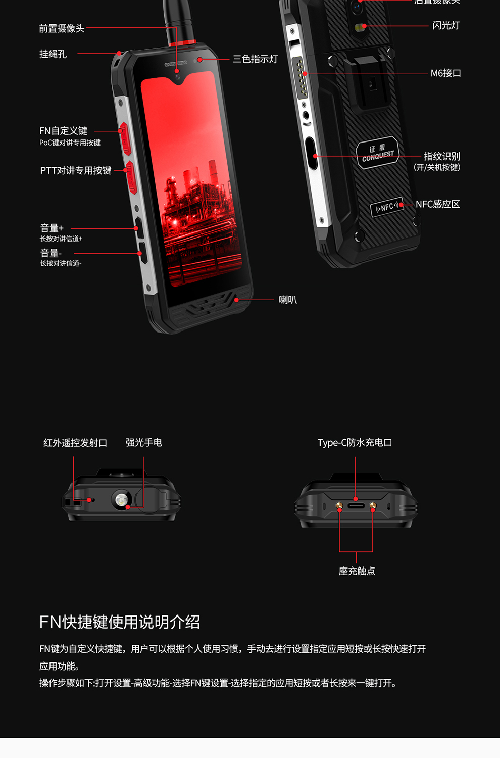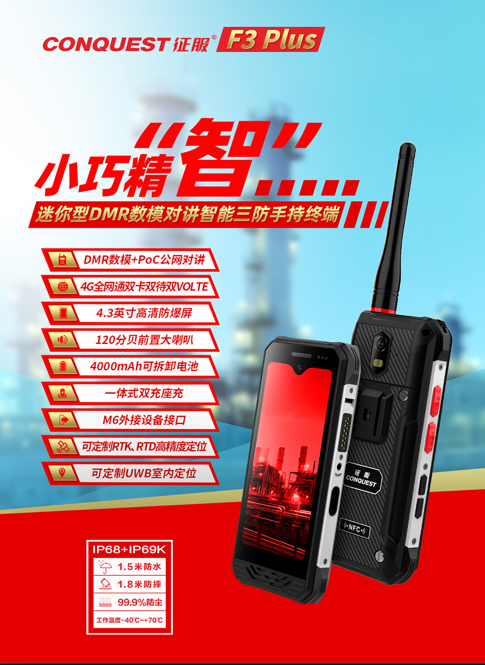 CONQUEST征服迷你款F3 Plus三防手持終端 ,三防對(duì)講手機(jī),可定制uwb室內(nèi)高精度定位