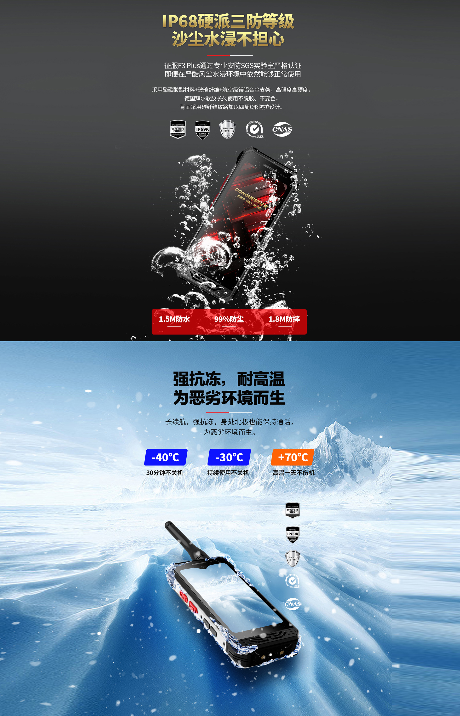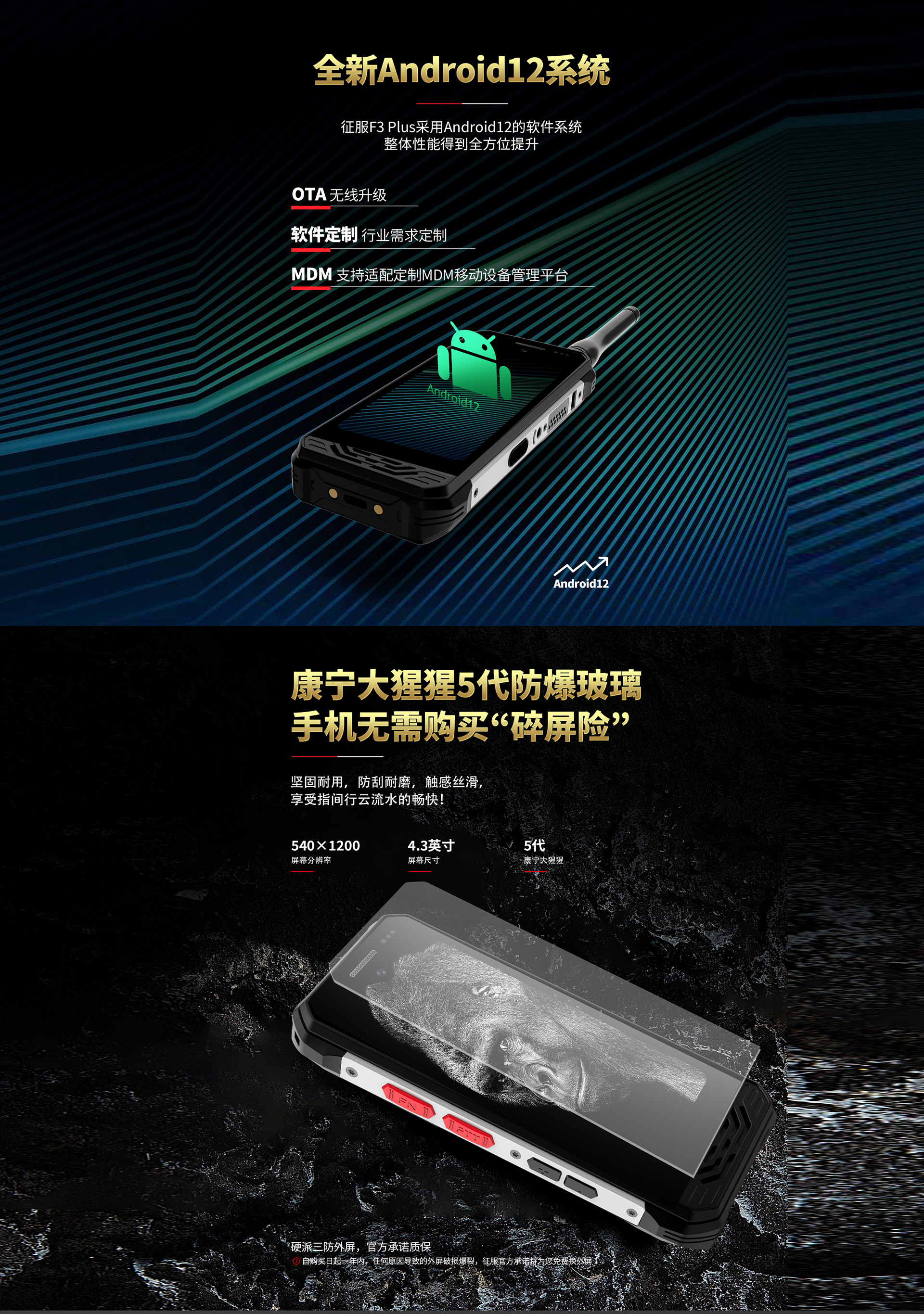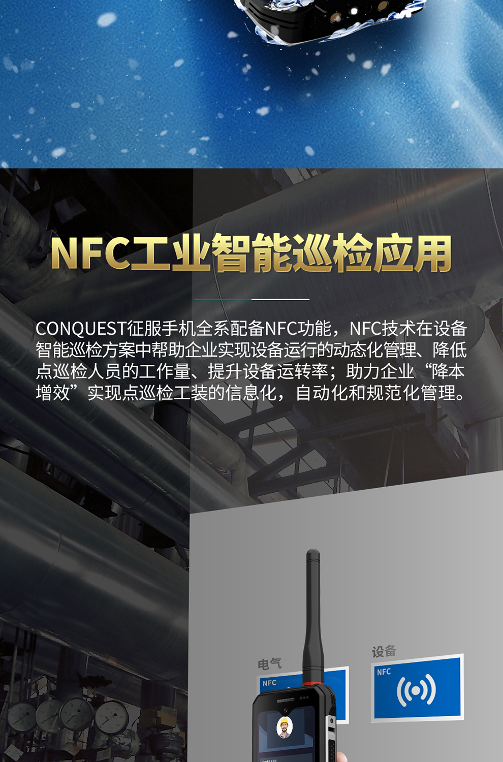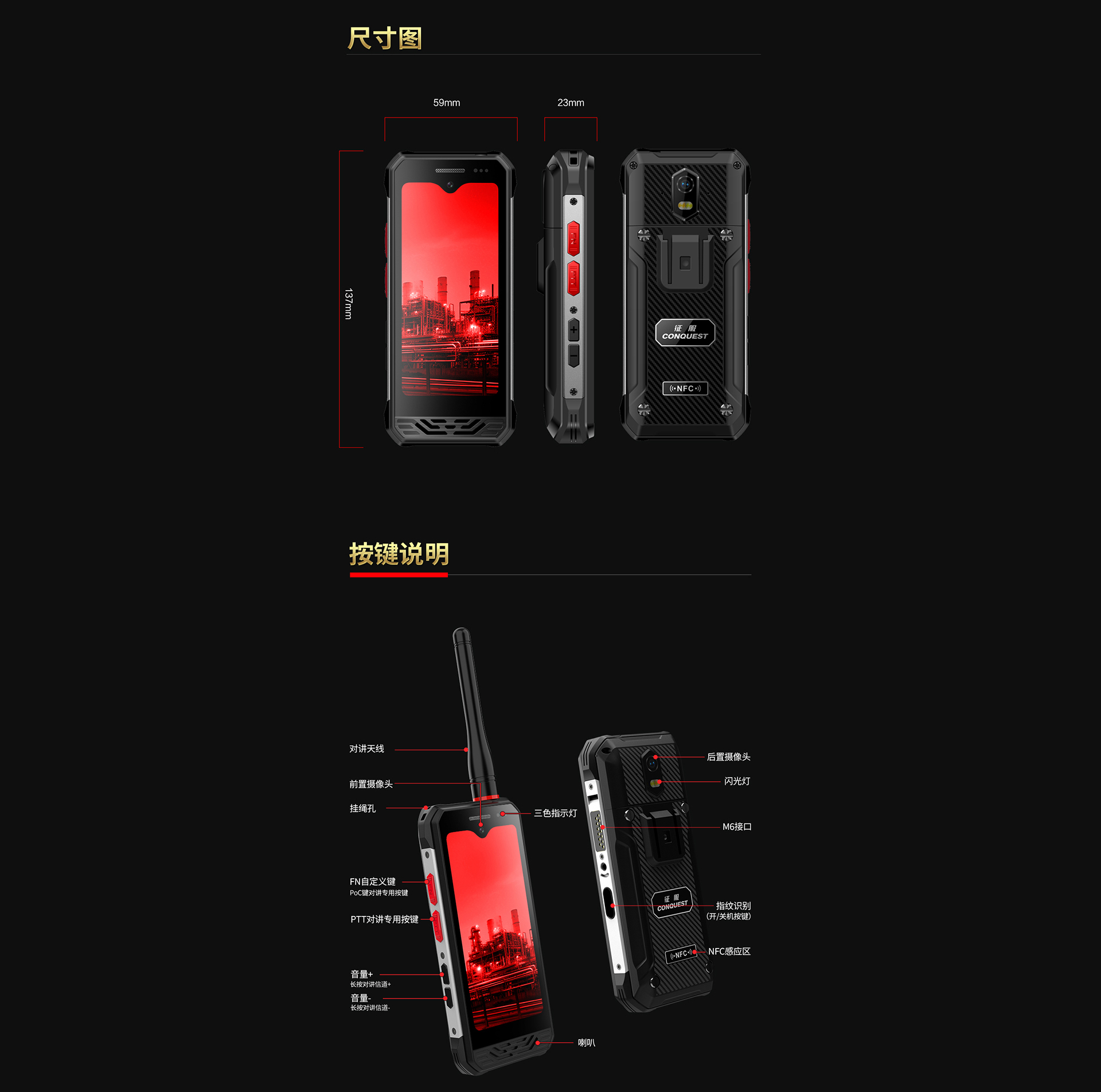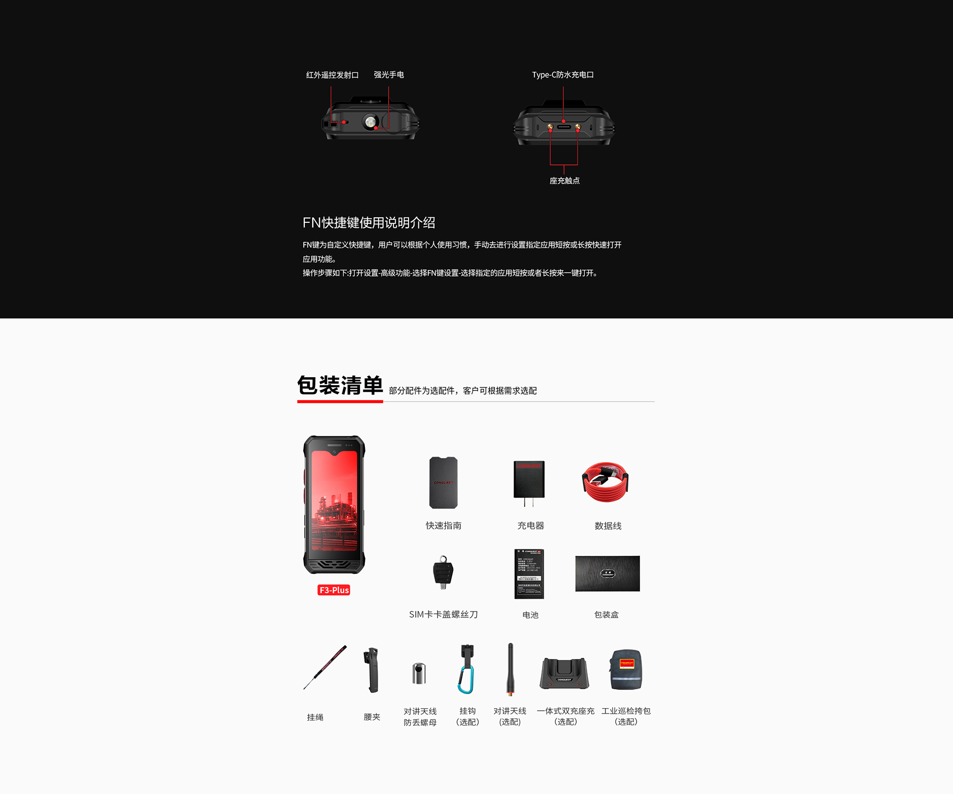 CONQUEST征服迷你款F3 Plus三防手持終端 ,三防對(duì)講手機(jī),可定制uwb室內(nèi)高精度定位