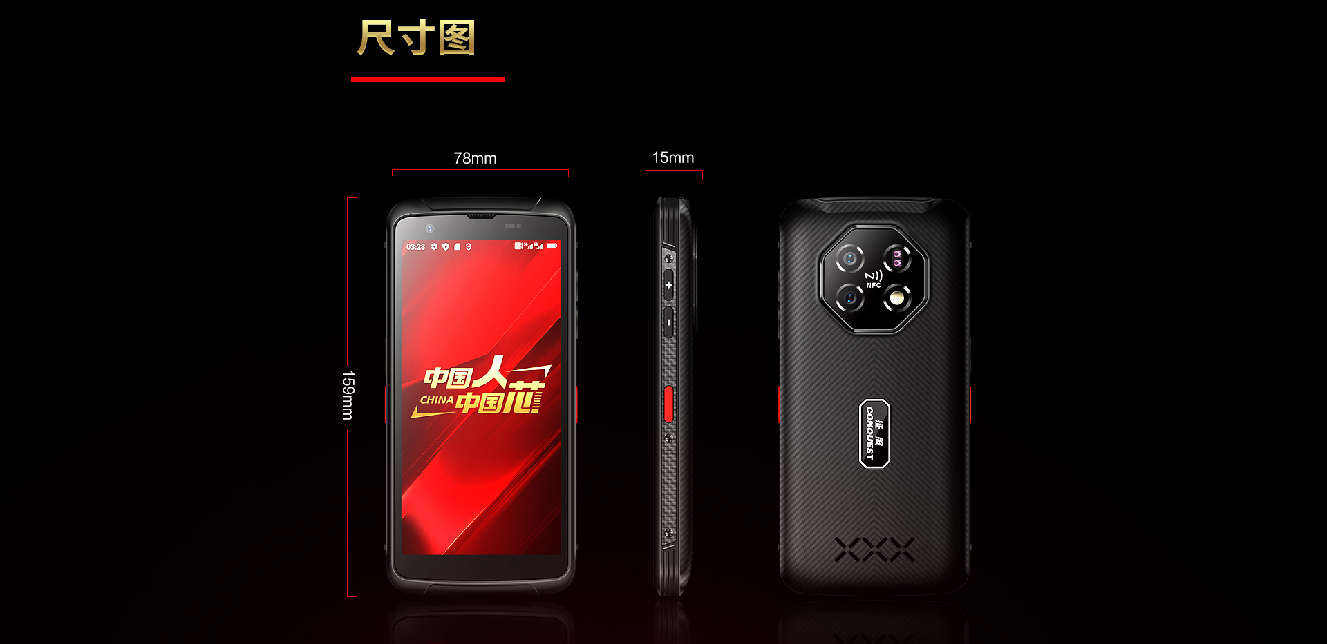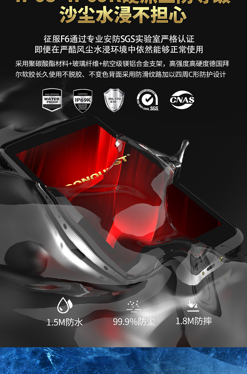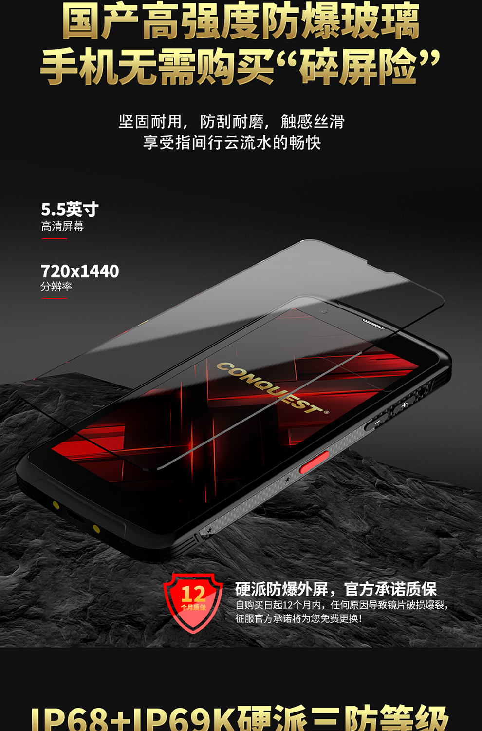CONQUEST征服F6 輕薄型5G國產(chǎn)芯單北斗定位三防智能手機!可定制麒麟鴻蒙系統(tǒng)