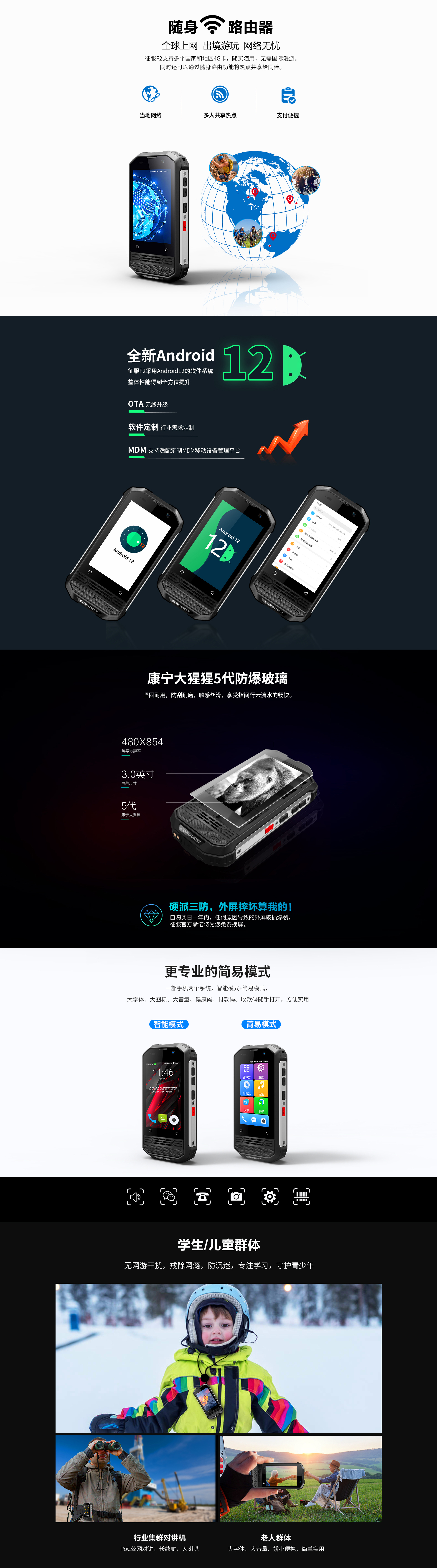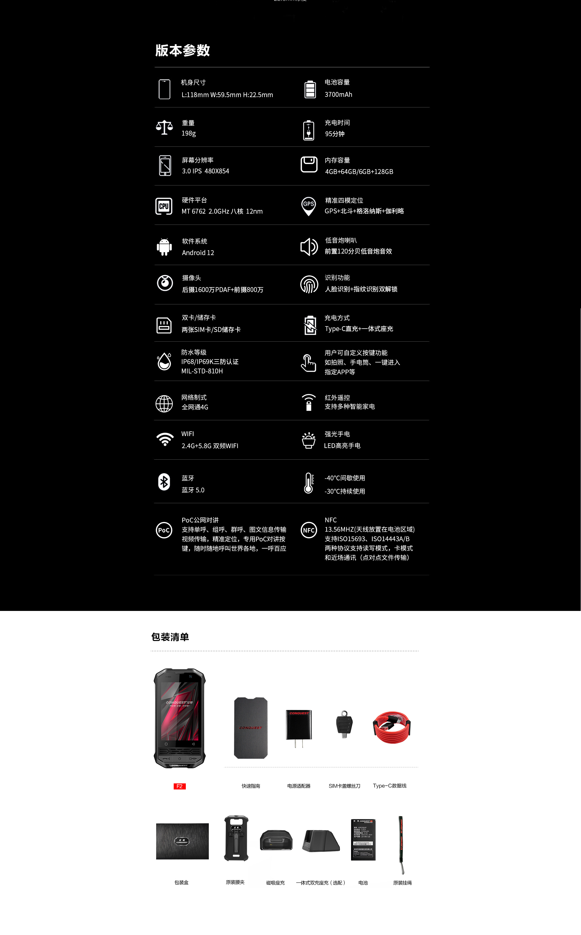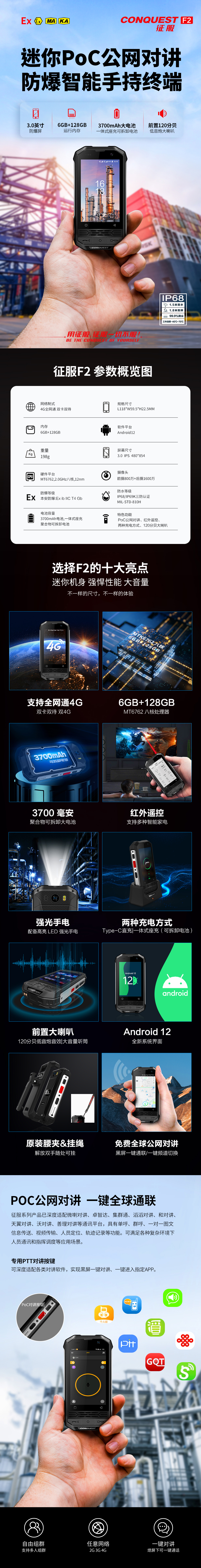 CONQUEST 征服F2迷你三防智能戶外防水防摔對講兒童學生防沉迷手機超長待機全網通4G 6GB+128GB
