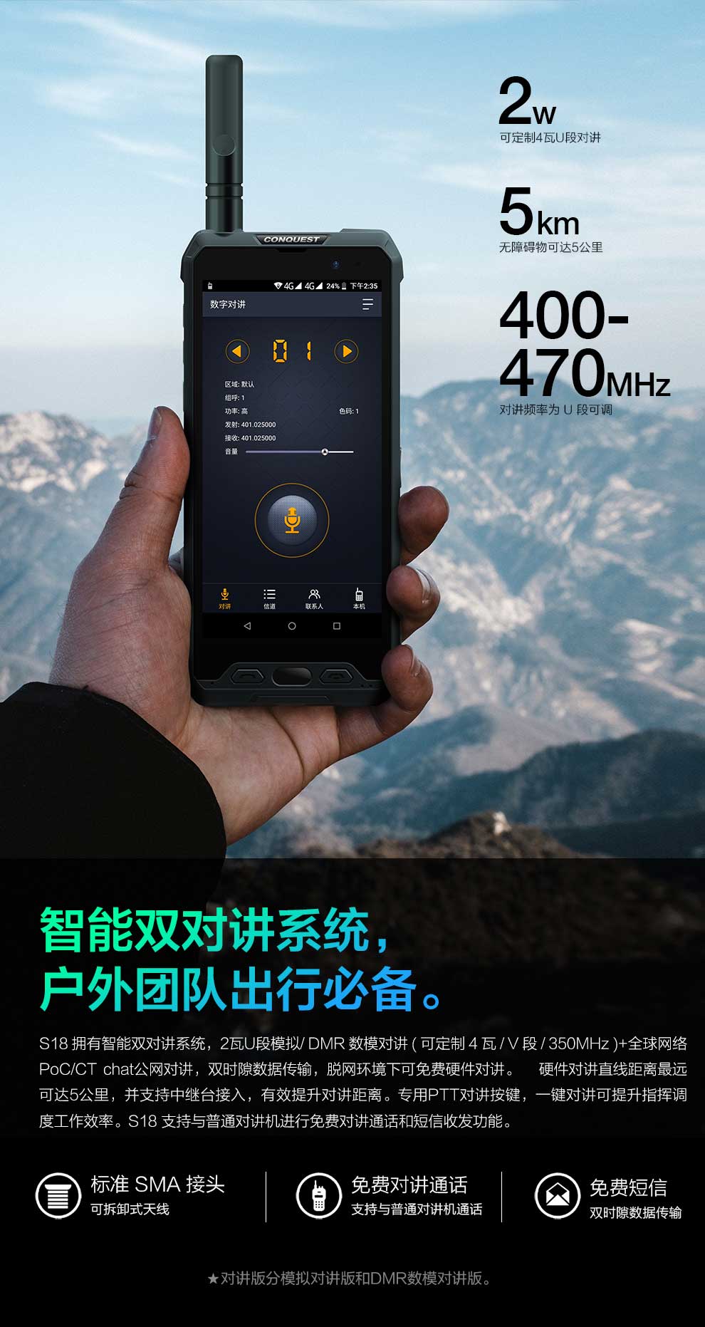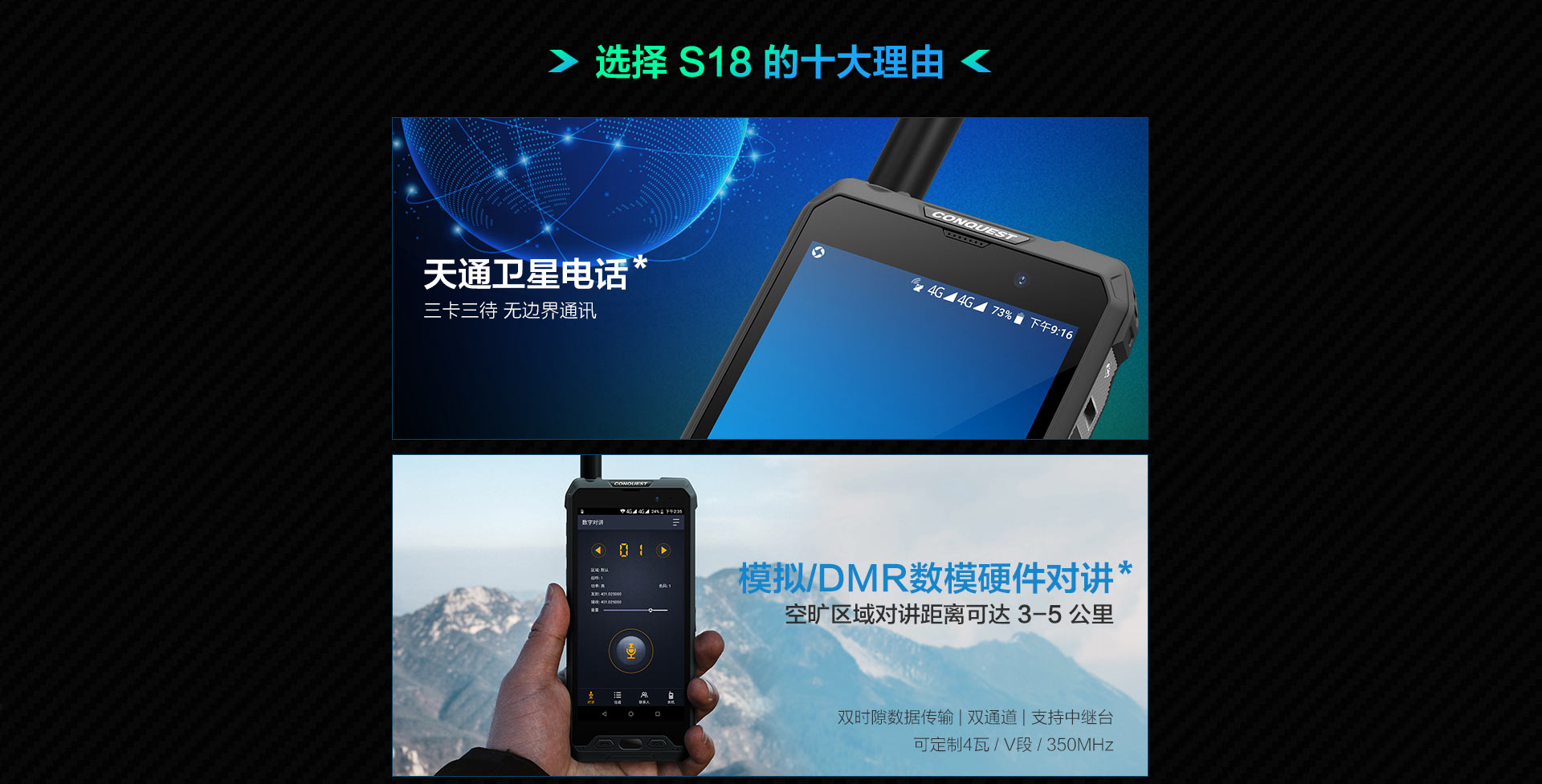 CONQUEST征服S18北斗天通一號(hào)衛(wèi)星電話(huà)全網(wǎng)通4G智能三防戶(hù)外9000毫安超長(zhǎng)待機(jī)定制手機(jī)