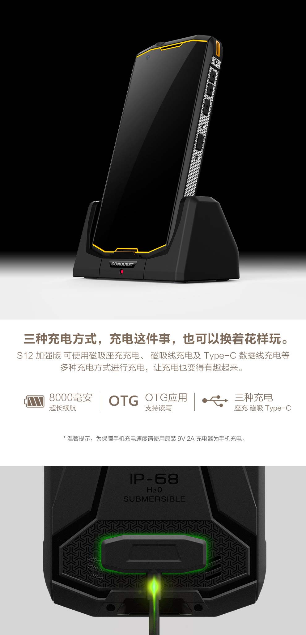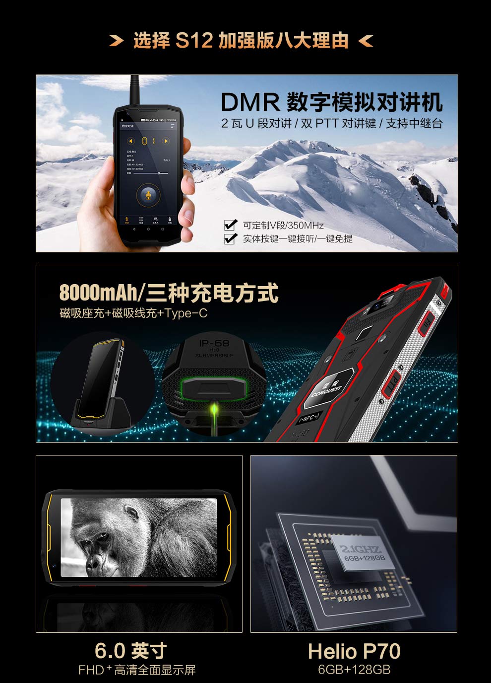 CONQUEST 征服S12 加強(qiáng)版北斗天通一號衛(wèi)星電話軍工三防智能手機(jī)戶外8000電池超長待機(jī)