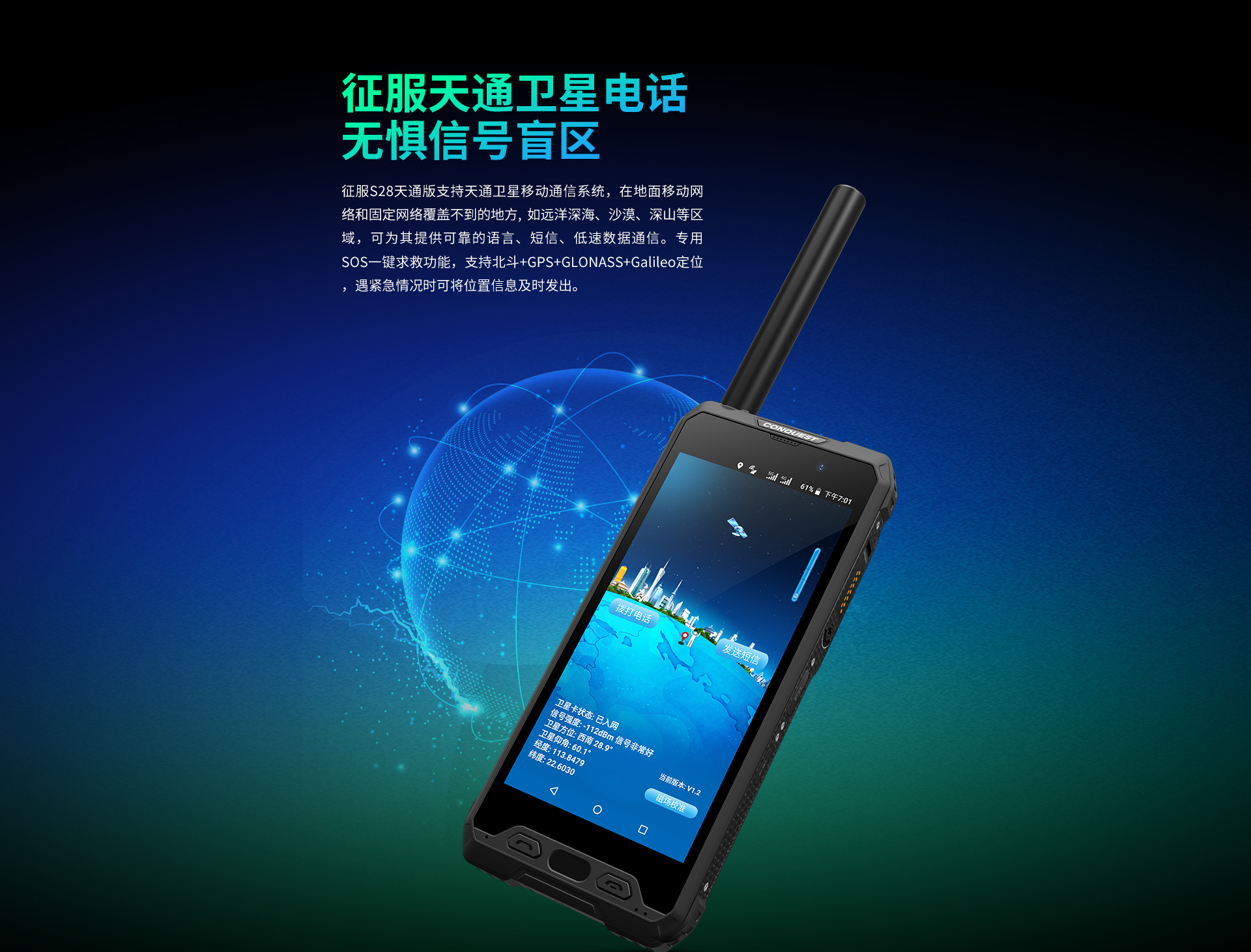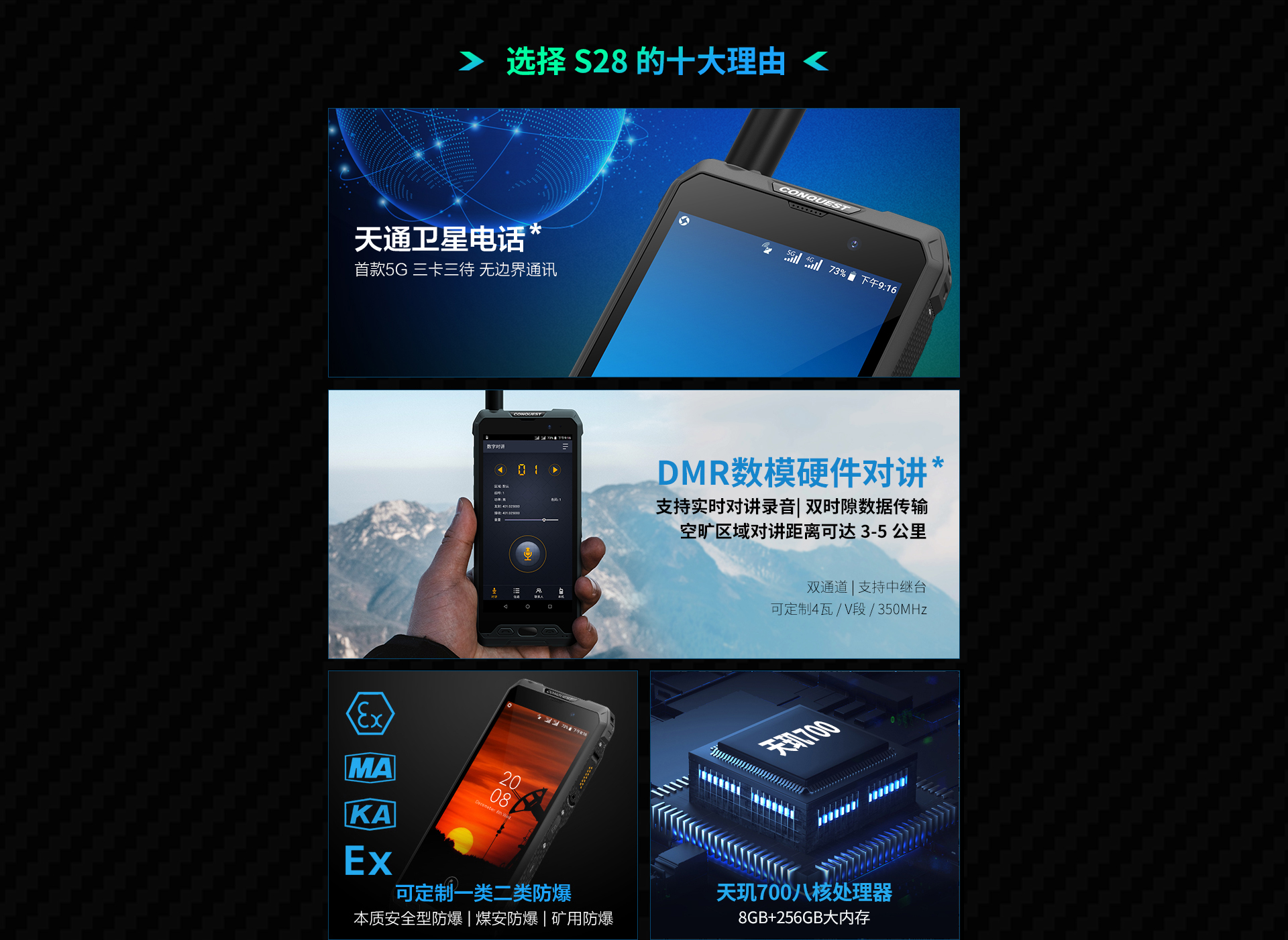 CONQUEST 征服S28 北斗天通一號5G衛(wèi)星電話全網(wǎng)通智能三防戶外超長待機定制手機 天通衛(wèi)星電話版