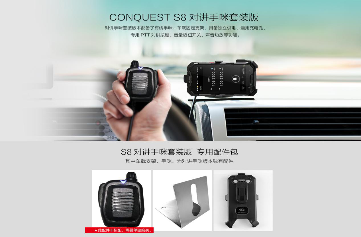 CONQUEST征服S8擁有智能雙對講系統(tǒng),2瓦U段全頻硬件無線定對講+全球PoC軟件網(wǎng)絡(luò)對講,對講直線距離可達5公里;支持手機與普通對講機進行免費通話和短信收發(fā)。 支持藍牙或有線對講手咪,并配有專用車載配件包。