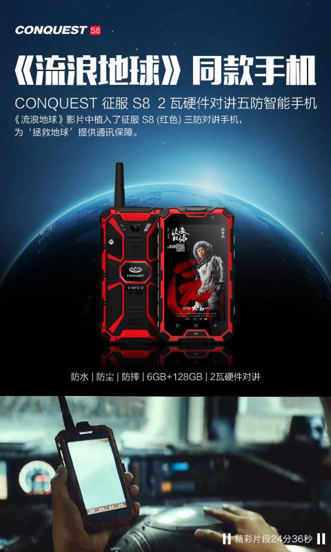 在地球表面已經(jīng)無法讓人類生存的條件下,通訊設(shè)備抗壓能力的重要性顯而易見。CONQUEST征服S8三防手機,就在《流浪地球》的科幻故事中亮相;劉啟帶著朵朵離開地下城,偷拿了姥爺?shù)淖C件來到地面,在重型卡車里用CONQUEST征服S8查詢信息,在惡劣的室外條件下實現(xiàn)精準(zhǔn)定位,面對地面上未知的危險與極差的通訊條件,CONQUEST征服S8仍能流暢運行,征服一切不平,為劉啟一行人指明前路。