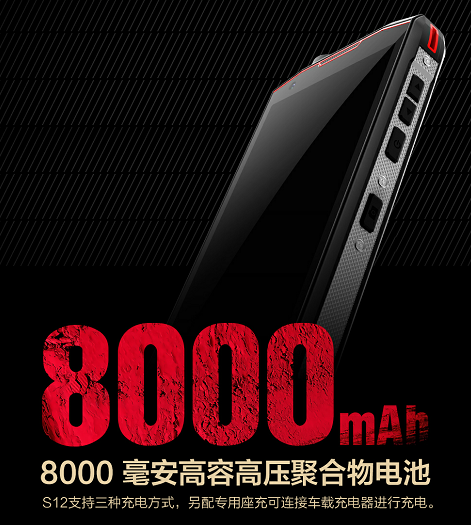 征服S12的電池容量達8000毫安,采用高容高壓聚合物電池,并支持USB直充+座式充電+磁吸充電三種方式,通過配備的9V 2A充電器直充,充滿8000毫安也只需四小時。