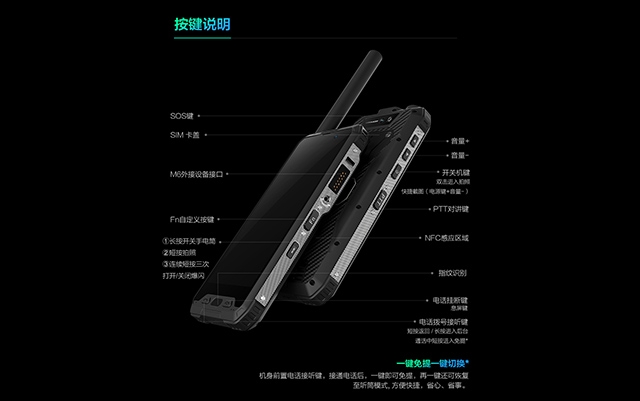 CONQUEST S18擁有三個物理鍵盤,可支持用戶在工作時(shí)進(jìn)行手套操作、濕手操作,PTT按鍵可輕松實(shí)現(xiàn)一呼百應(yīng),獨(dú)有模式切換按鍵一鍵切換對講/電話模式、支持SOS一鍵呼救。此外,CONQUEST S18延續(xù)了智能終端用戶的使用習(xí)慣,支持觸屏操控使用,滿足用戶的不同使用場景和體驗(yàn)需求。