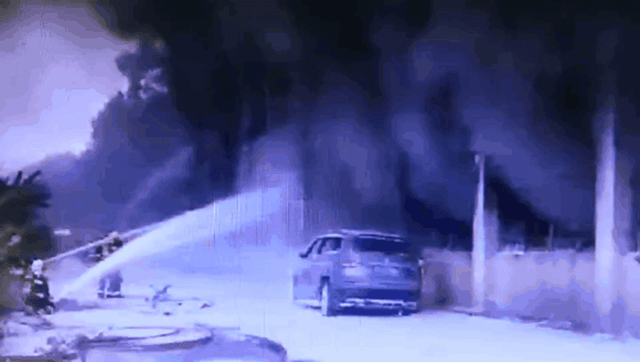 視頻中,現(xiàn)場(chǎng)火光沖天,濃煙滾滾,不時(shí)有爆炸聲響傳出,引發(fā)周邊圍觀群眾陣陣驚呼。