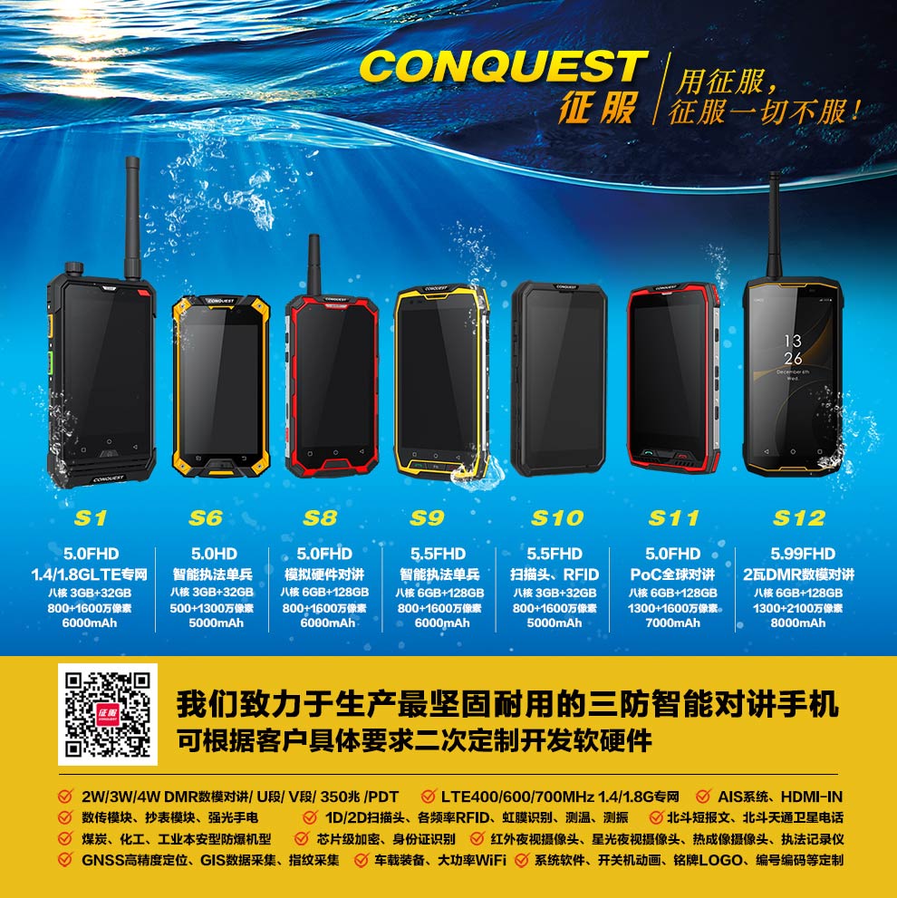 康凱思特三防手機(jī)征服(CONQUEST)S系列;戶外對(duì)講手機(jī)