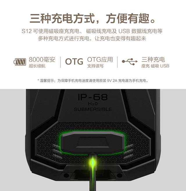 2,大部分三防手機(jī)舍棄了輕薄設(shè)計(jì),一方面是為了更為結(jié)實(shí)的外殼和內(nèi)部電路設(shè)計(jì),另外一方面舍棄輕薄設(shè)計(jì)也可以塞得下更大的電池,因此三防手機(jī)電量通常比較持久。比如CONQUEST S12就有了反向充電技術(shù),沒有大容量電池,怎么敢做這種功能。