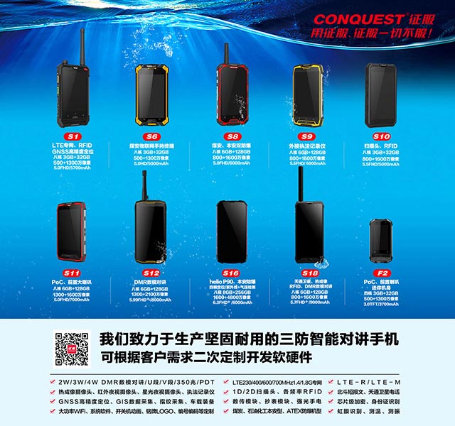 三防領(lǐng)域的老牌廠商CONQUEST,在步入智能時(shí)代后進(jìn)行技術(shù)革新,推出了CONQUEST系列的三防智能手機(jī),在保證與尋常智能手機(jī)有著同樣流暢度的同時(shí),達(dá)到最高防護(hù)等級(jí)IP68,惡劣環(huán)境下仍可使用。因受到高度認(rèn)可,CONQUEST三防手機(jī)還作為軍工用機(jī)還植入于《紅海行動(dòng)》和《流浪地球》中,高品質(zhì)和專業(yè)防護(hù)是其代言詞。